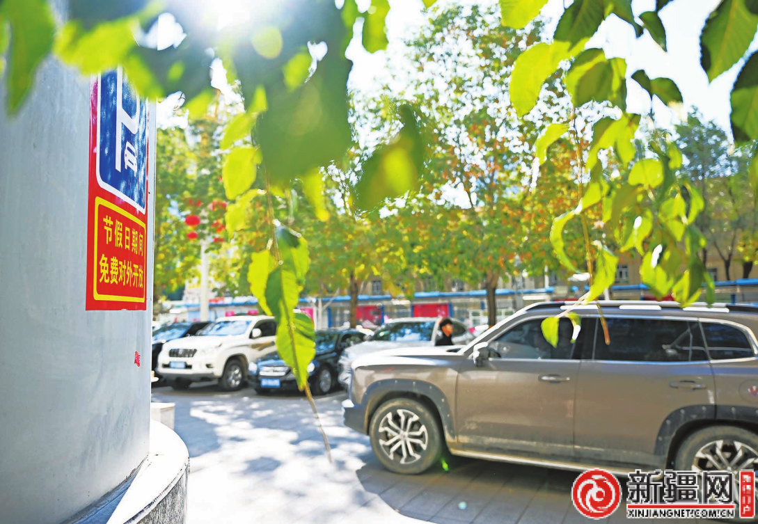 节假日期间,新疆建筑设计院泊车场免费对外开放。(10月5日摄)(记者迪丽娜尔·加力肯摄)